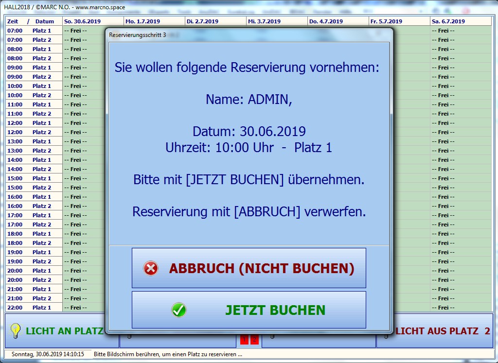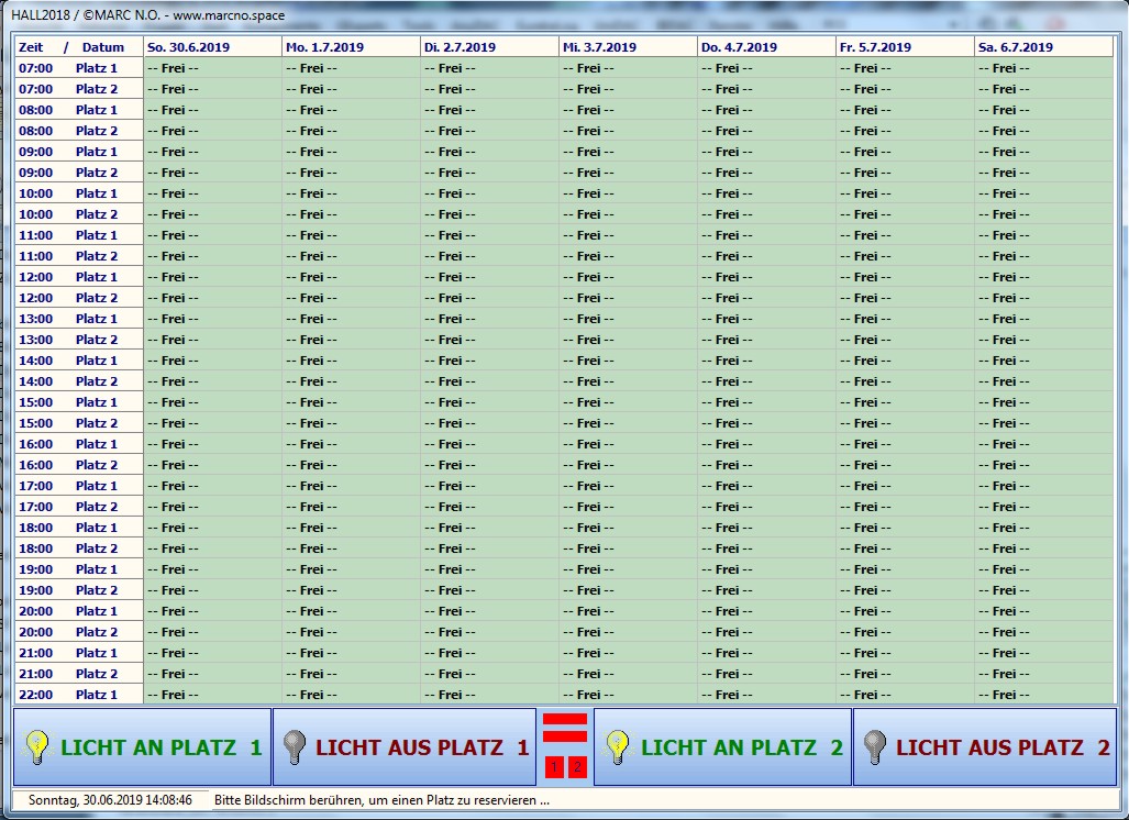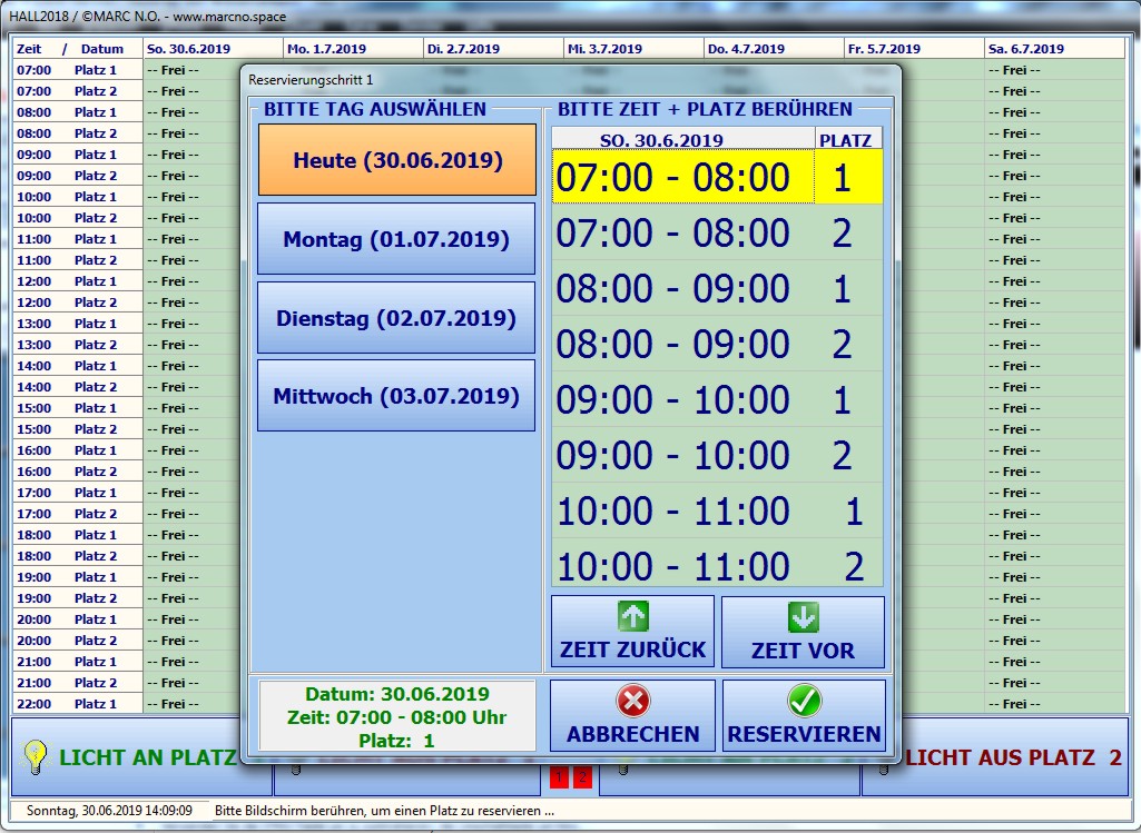 Das Reservierungssystem für Hallen ist je nach Grösse des Bildschirms verfügbar für bis zu 8 Plätze (Erweiterung möglich).